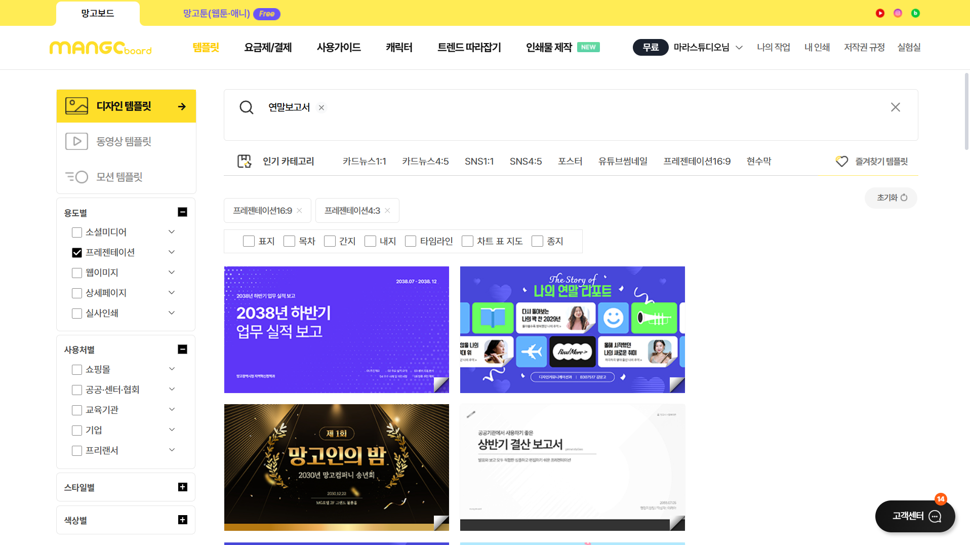 - 망고보드 메인 페이지 → '템플릿' 검색창에 ‘연말보고서’, ‘인포그래픽’ 입력