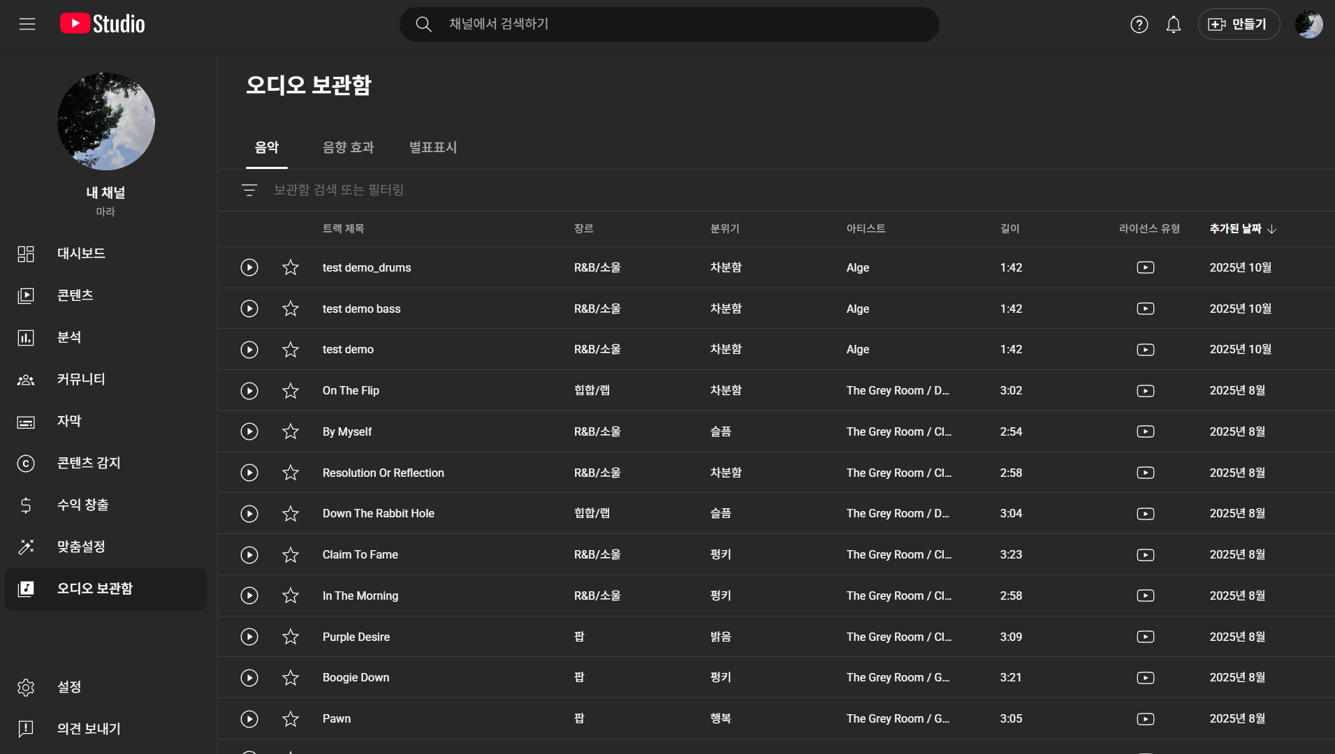 - YouTube 오디오 라이브러리 : 영상 제작에 자유롭게 사용할 수 있는 무료 배경음악과 효과음을 제공하는 공식 음원 라이브러리입니다.