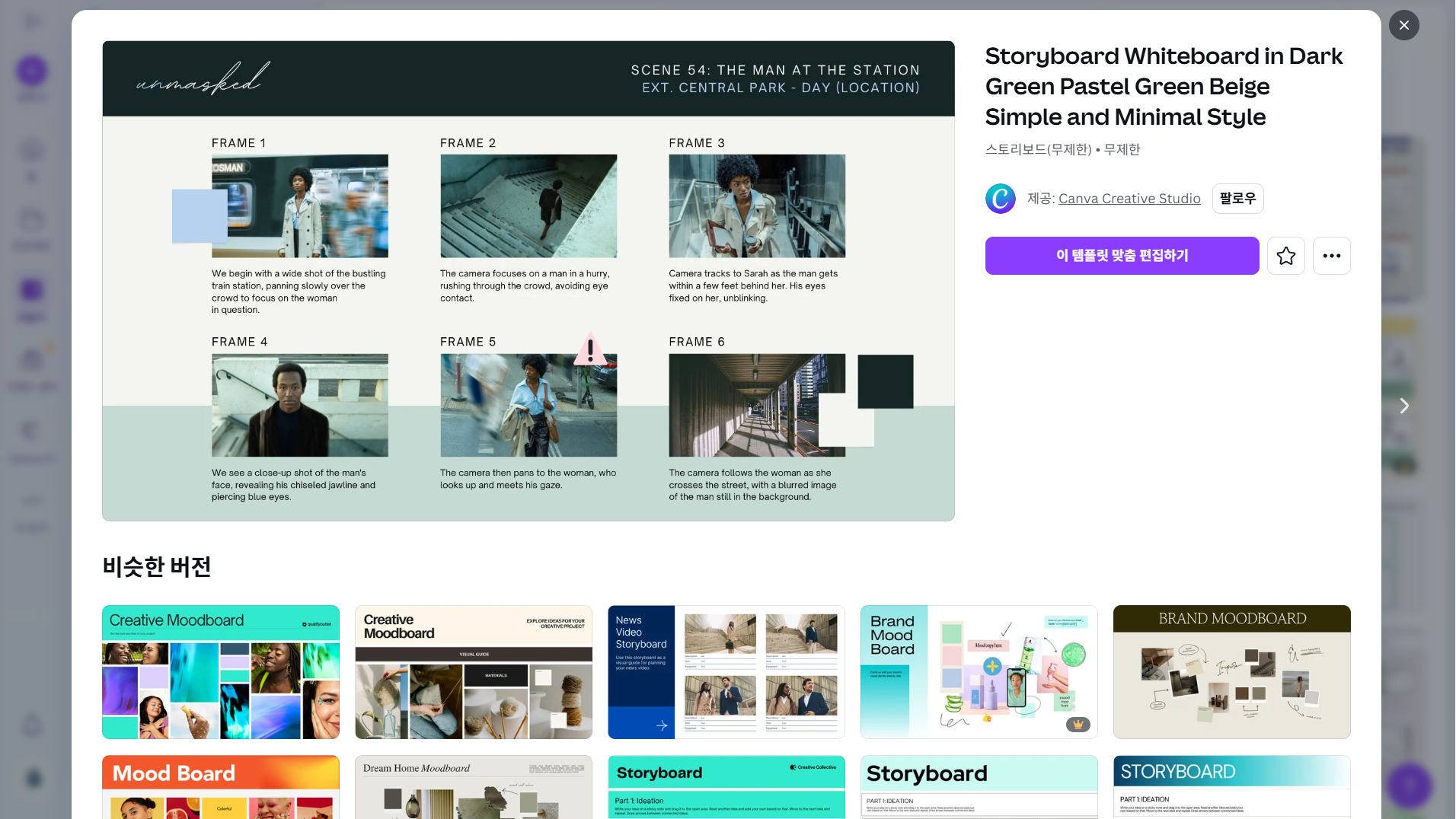 이 단계에서 영상의 최종 길이와 분위기를 결정하고, 분위기에 맞는 BGM을 미리 선정해 타임라인에 깔아두면 컷 편집 리듬을 잡기 수월해집니다. 미리캔버스나 Canva에서 ‘영상 스토리보드 템플릿’을 활용하면 정리가 쉬집니다.