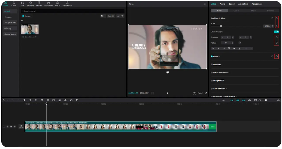 CapCut에서는 ‘자동 품질 향상’ 기능을 사용하면, 인공지능이 영상의 밝기와 노이즈를 자동으로 보정해 줍니다. 특히 스마트폰으로 찍어 화질이 아쉬울 때 활용해 보세요.